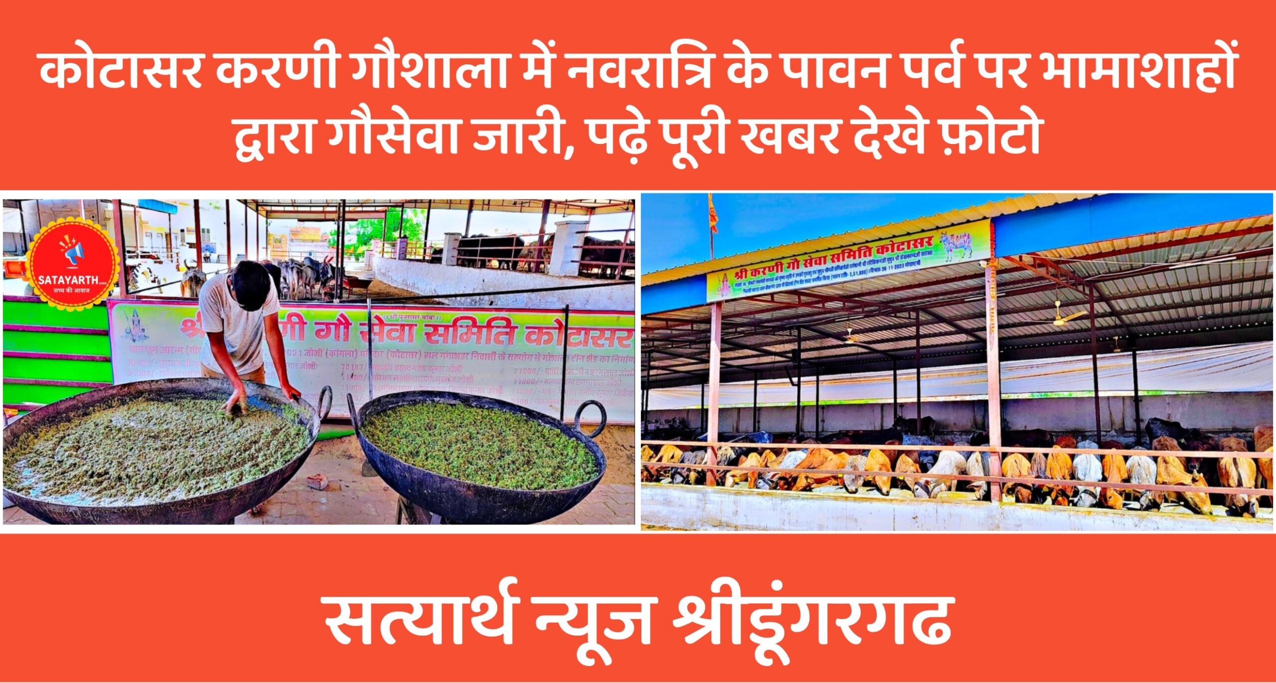 गौशाला के भामाशाह परम गौभक्त सुनील कुमार माथुर बीकानेर की तरफ से आज चतुर्थ नवरात्र के अति पावन अवसर पर गौ माताओं के लिए 2500 रुपये की राशि समर्पित कर दो कड़ाई मूंग चूरी का भंडारा गौशाला की गौ माताओं को समर्पित किया गया। गौशाला कमेटी ने भामाशाह परिवार के लिए सुख समृद्धि की कामना करते हुए आपका आभार व्यक्त किया। गौशाला के भामाशाह पर्यावरण प्रेमी रमेश कुमार बोहरा बीकानेर की पावन प्रेरणा से प्रेरित होकर नो गो सखाओं के द्वारा 9 दिवसीय मुंगचुरी का अति पावन भंडारा का सुभ संकल्प लिया गया है जो आज गौ सखा सुनील कुमार माथुर बीकानेर के द्वारा गौ सेवा की गई।