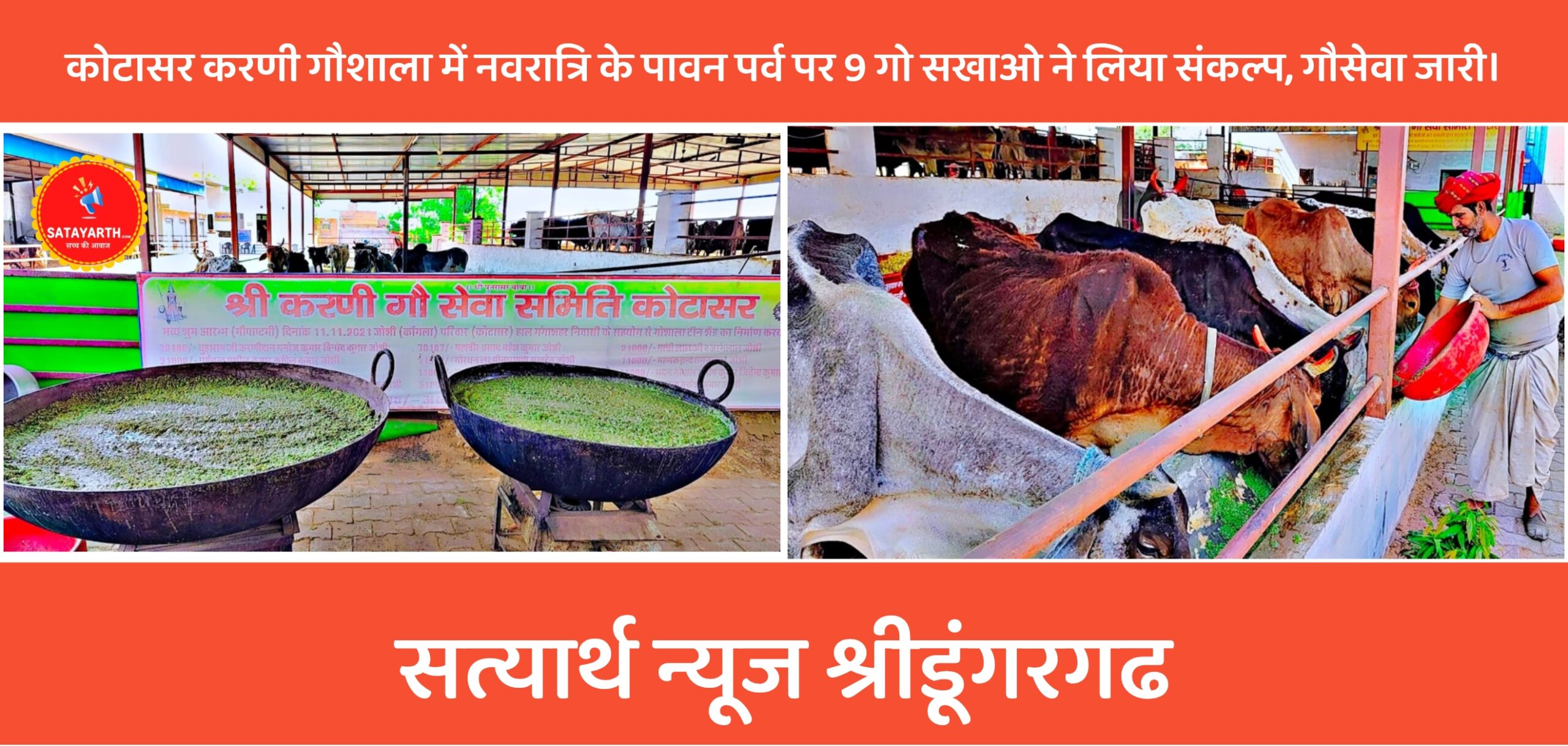 गौशाला के भामाशाह परम गौ भक्त अजय कुमार पुरोहित बीकानेर की तरफ से आज छठे,सातवें नवरात्र के अति पावन अवसर पर गौ माताओं के लिए ₹2500 की राशि समर्पित कर दो कड़ाई मूंग चूरी का अति पावन भंडारा गौशाला की गौ माताओं को समर्पित किया गया गौशाला कमेटी ने भामाशाह परिवार के लिए सुख समृद्धि की कामना करते हुए आभार व्यक्त किया गौशाला के भामाशाह पर्यावरण प्रेमी रमेश कुमार बोहरा बीकानेर की पावन प्रेरणा से प्रेरित होकर नो गो सखाओं के द्वारा 9 दिवसीय मुंगचुरी का अति पावन भंडारा का सुभ संकल्प लिया गया है जो आज गौ सखा अजय कुमार पुरोहित बीकानेर के द्वारा गौ सेवा की गई है।