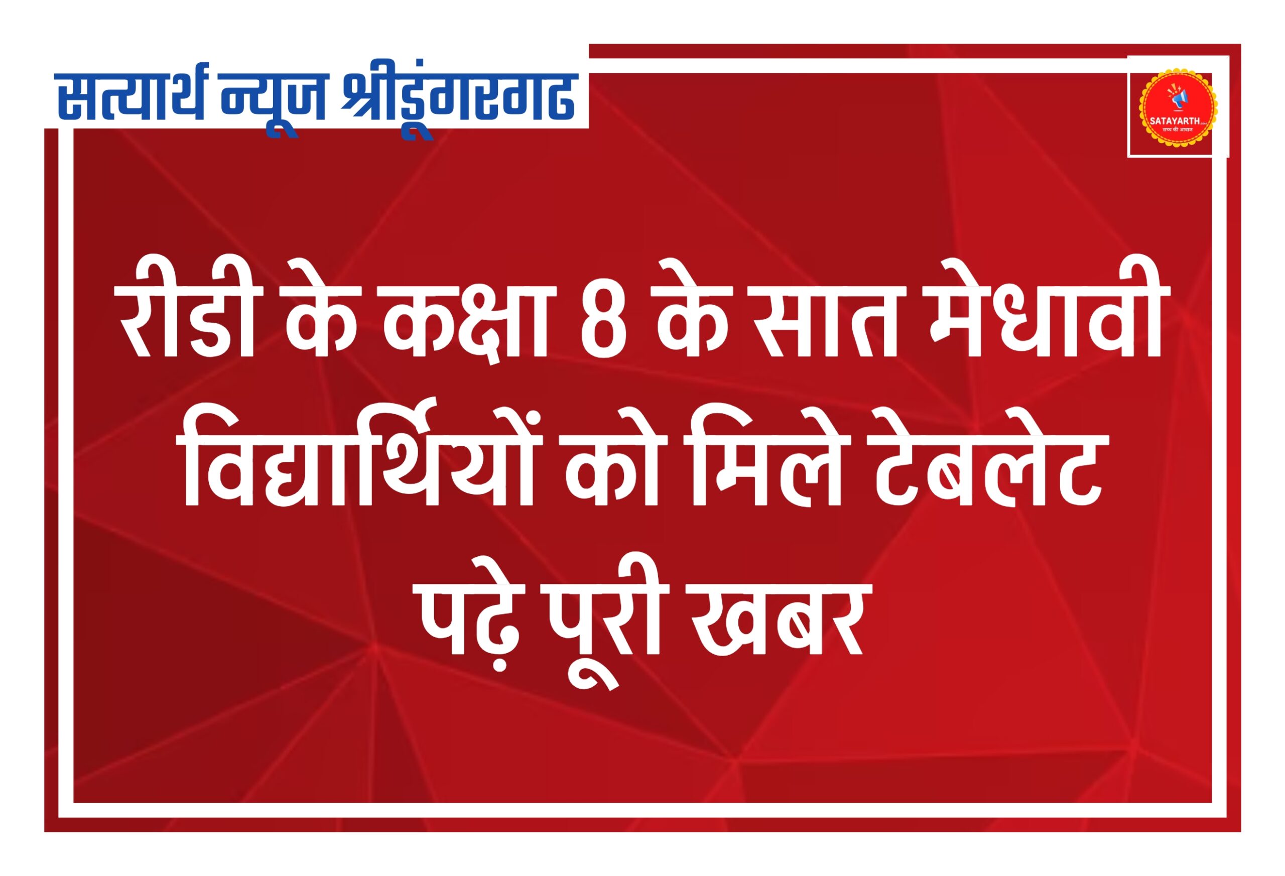 क्षेत्र के गांव रीड़ी के महात्मा गांधी राजकीय स्कूल में सत्र 2023-24 में कक्षा 8 के 7 छात्र छात्राओं को टेबलेट मिले है। प्रधानाचार्य मक्खनलाल ने बताया कि बीकानेर में आयोजित कार्यक्रम में शिक्षा विभाग द्वारा स्कूल के सात विद्यार्थियों को टेबलेट दिए है। मेधावी विद्यार्थी आईना शर्मा डिंपल भार्गव, ललिता सिद्ध, ज्योति भार्गव, गोमती भार्गव विष्णु शर्मा व विष्णु को टेबलेट मिले है। स्कूल के प्रधानाचार्य मक्खनलाल व स्टाफ ने सभी विद्यार्थियों को बधाई देते हुए आगे भी एकाग्रता के साथ निरंतर अध्ययन करने की प्रेरणा दी। विद्यार्थियों के परिजनों ने स्कूल स्टाफ का आभार जताया।
