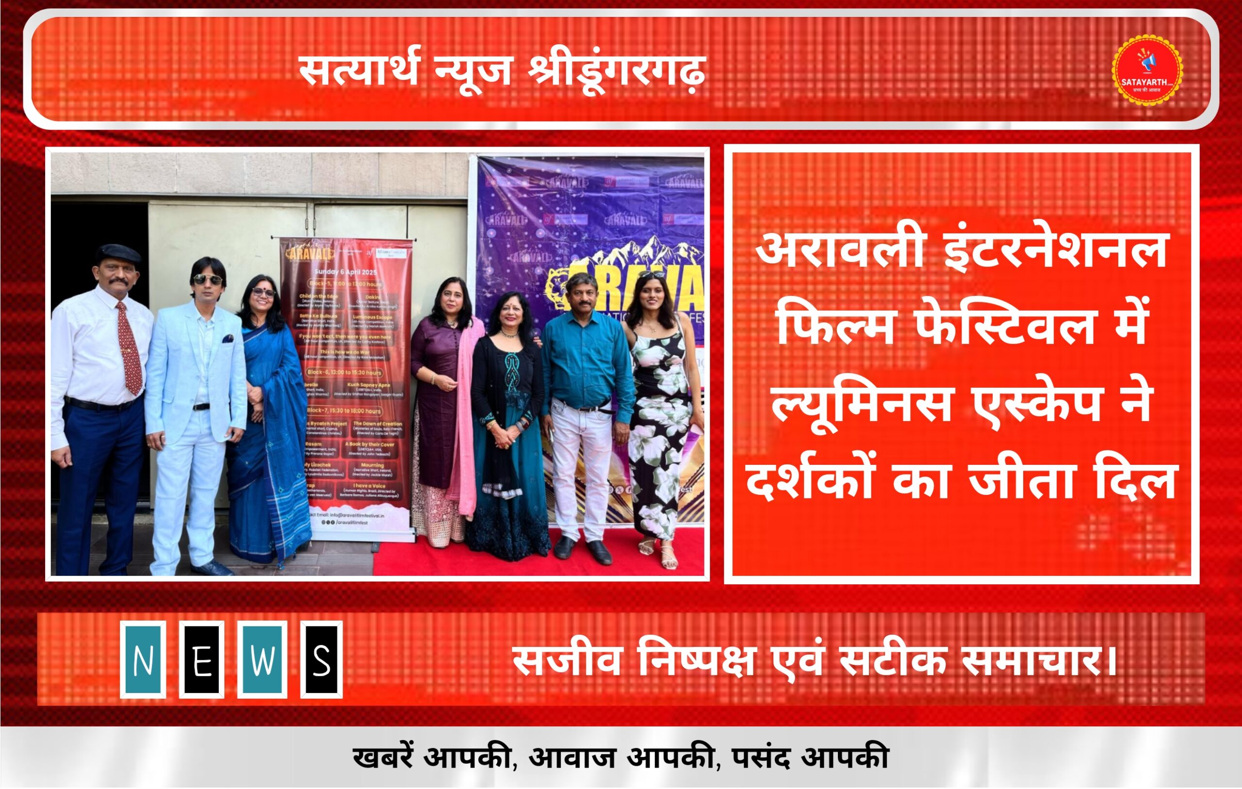 दिल्ली में आयोजित अरावली इंटरनेशनल फिल्म फेस्टिवल में अभिनेता-निर्देशक हरीश महर्षि की शार्ट फिल्म Luminous Escape’का प्रीमयर हुआ 48 घण्टे में फ़िल्म बनाने कि इस प्रतियोगिता के लिए बनाई गई फ़िल्म ने अपनी कहानी अभिनय से जहां दर्शकों से खूब सराहाना बटोरी वहीं ज्यूरी व समीक्षकों की प्रशंसा प्राप्त की। फिल्म युवाओं को अपने सपनों को पूरा करने के लिए जी जान से जुटने परिवार का साथ पाने व अपने सोच-समझ कर लिए गए निर्णय की जिम्मेदारी लेने का संजीदा संदेश देती है। फ़िल्म की कलाकार वरिष्ठ साहित्यकार मोनिका गौड़ ने बताया कि इस फ़िल्म की शूटिंग बीकानेर में हुई थी। हरीश महर्षि के अलावा बीकानेर के लेखक परितोष झा,रमन शर्मा,हनुषा राजावत ने भी अभिनय किया तथा तकनीकी पक्ष संभाला था,इस्माइ आज़ाद व जैन इमाम ने फ़िल्म की स्क्रीनिंग के पश्चात तीनों मुख्य कलाकारों ने दर्शकों के साथ प्रश्नोत्तर सत्र में भाग लिया इस खास मौके पर बॉलीवुड और अंतरराष्ट्रीय सिनेमा से जुड़े कलाकार व निर्देशक सुरेन्द्र वर्मा निहारिका सिंह शादाब खान अवनीश राजवंशी,सोनू शिवा आदि भी मौजूद थे। हरीश महर्षि ने बताया कि अगले प्रोजेक्ट के रूप में वे एक राजस्थानी फीचर फिल्म बना रहे है जिस की स्क्रिप्ट व कास्टिंग पर काम हो चुका है जल्द ही फ़िल्म शूटिंग फ्लोर पर जाएगी। इस फ़िल्म हेतु अरावली इंटरनेशनल फ़िल्म फेस्टिवल द्वारा हरीश महर्षि को सम्मानित किया गया