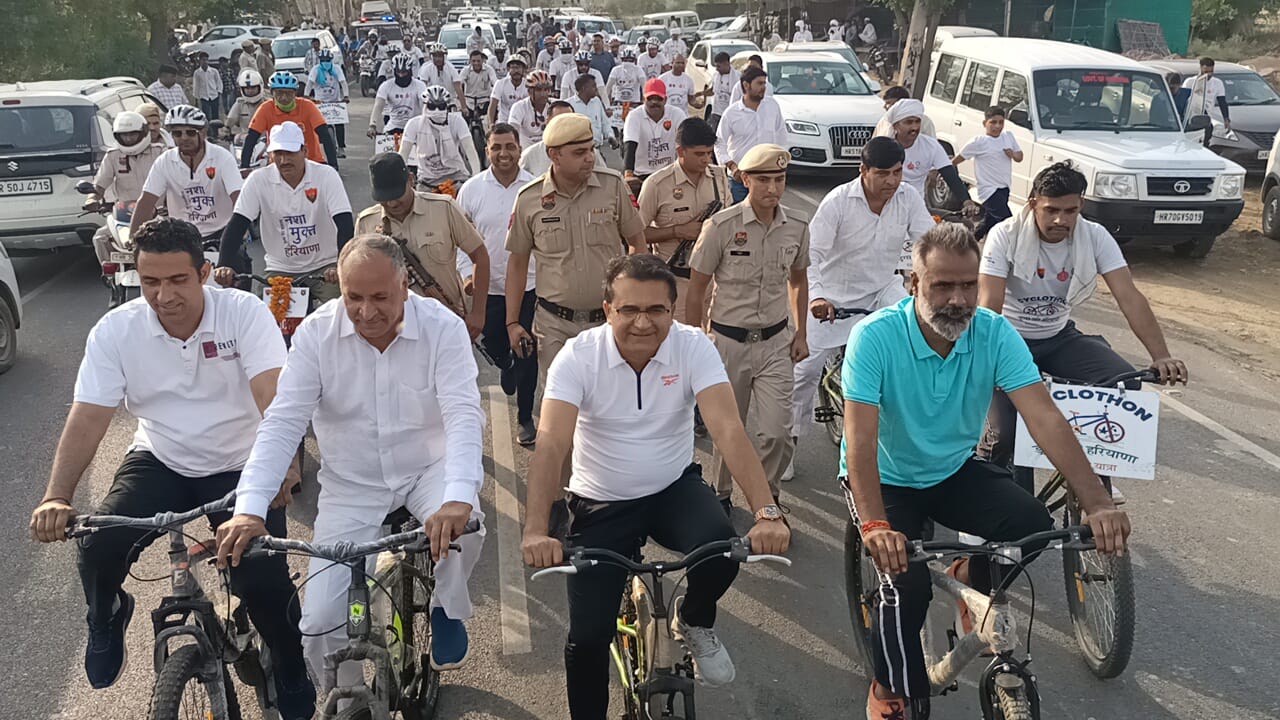 मुख्यमंत्री नायब सिंह सैनी के ‘ड्रग फ्री हरियाणा’ संदेश के साथ जिला पलवल में हुआ साइक्लोथॉन का आगमन, स्वागत में उमड़ा जनसैलाब