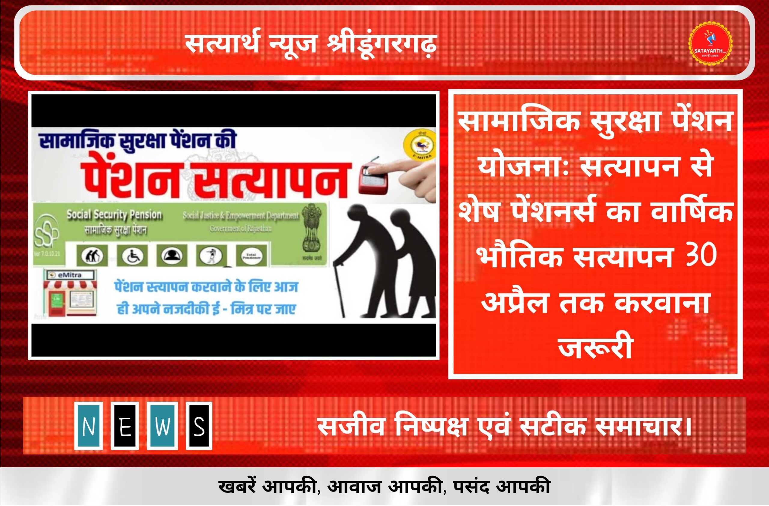 सामाजिक सुरक्षा पेंशन योजनाओं के तहत पेंशन प्राप्त कर रहे लाभार्थियों को 30 अप्रैल तक वार्षिक भौतिक सत्यापन करवाना जरूरी है।