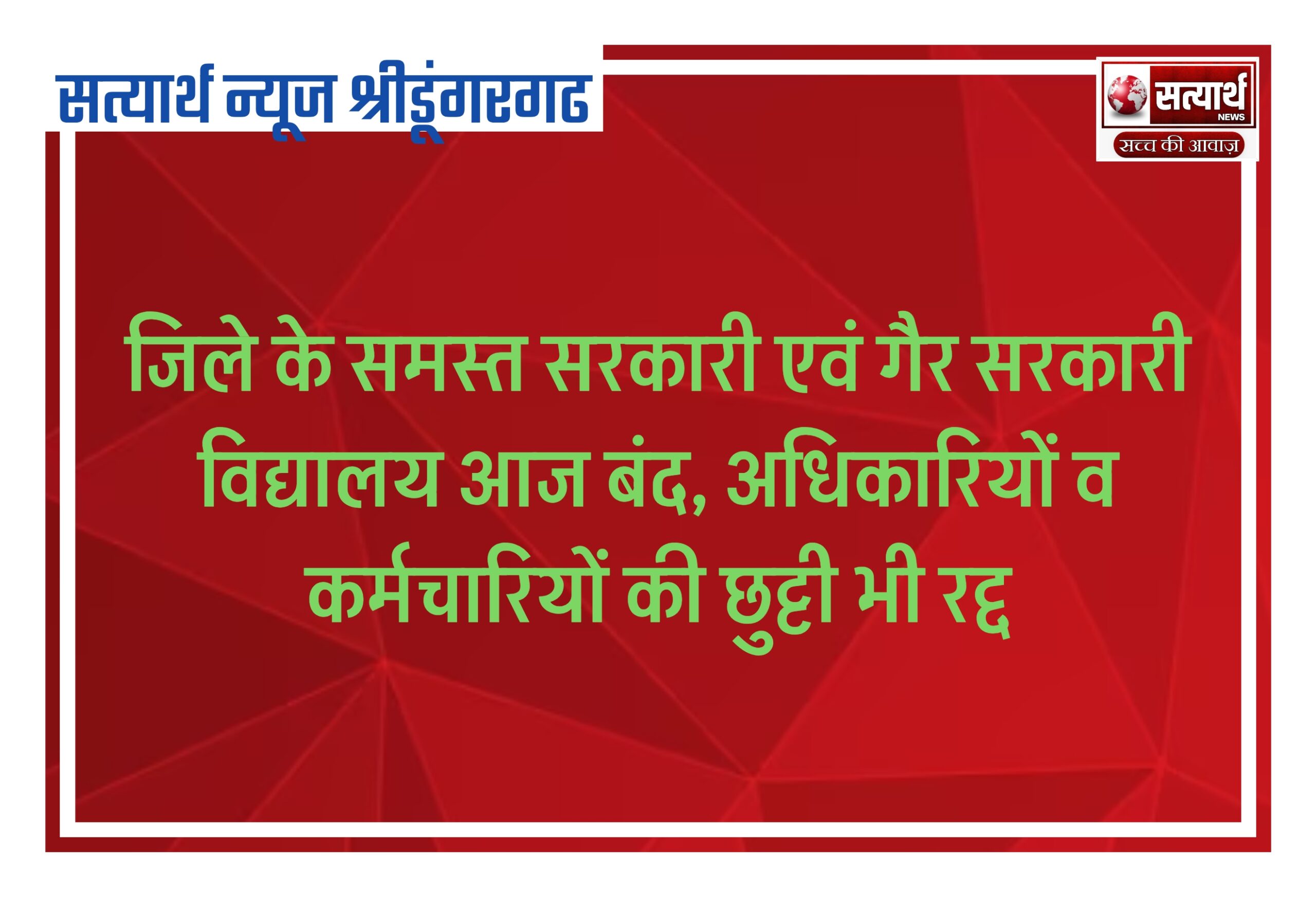 जिले में सरकारी और प्राइवेट सभी स्कूलों में छुट्टी कर दी गई है। स्कूल में इन दिनों फाइनल होम एग्जाम चल रहे हैं, जिसे स्थगित कर दिया गया है। जिला कलेक्टर के आदेश पर जिला शिक्षा अधिकारी रामगोपाल शर्मा ने ये आदेश दिए हैं। बुधवार की परीक्षा भी स्थगित की गई है। इसके अलावा अधिकारीयों व कर्मचारियों की भी छुट्टी रद्द कर दी गई है। सभी को मुख्यालय नहीं छोड़ने के आदेश जारी किए है।