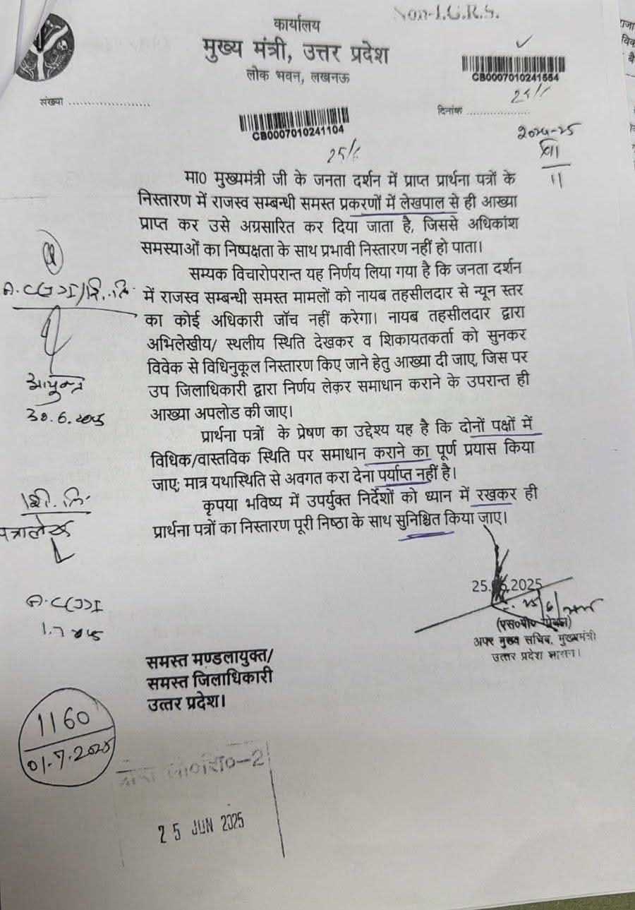 मुख्यमंत्री कार्यालय ने जनता दर्शन में आ रही शिकायतों को गंभीरता से लेते हुए लेखपाल स्तर की जांच पर रोक लगा दी है