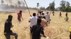 जिससे तकरीबन 30से40 बीघा के आसपास खड़ी गेहूं की फसल जलकर राख हो गई फायर ब्रिगेड टीम को घटनास्थल पर पहुंचे में थोड़ा वक्त लगा। लेकिन रास्ता न होने की वजह से फायर ब्रिगेड की गाड़ी वहाँ तक नहीं पहुंच पाई और करीब 30से 40 बीघा गेहूं की पकी फसल जलकर खाक में मिल गई।