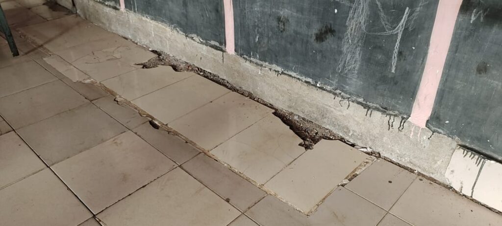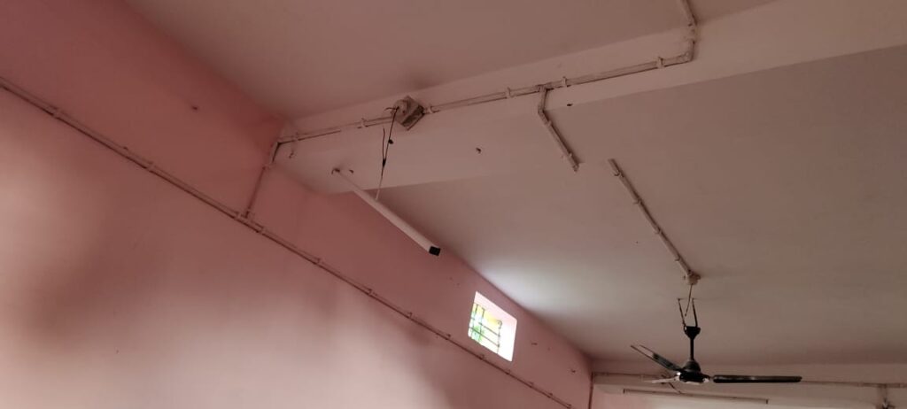 कन्हारगांव आश्रम में मरम्मत में हुई अनियमितता, टाइल्स व लाइट टूटा पड़ा