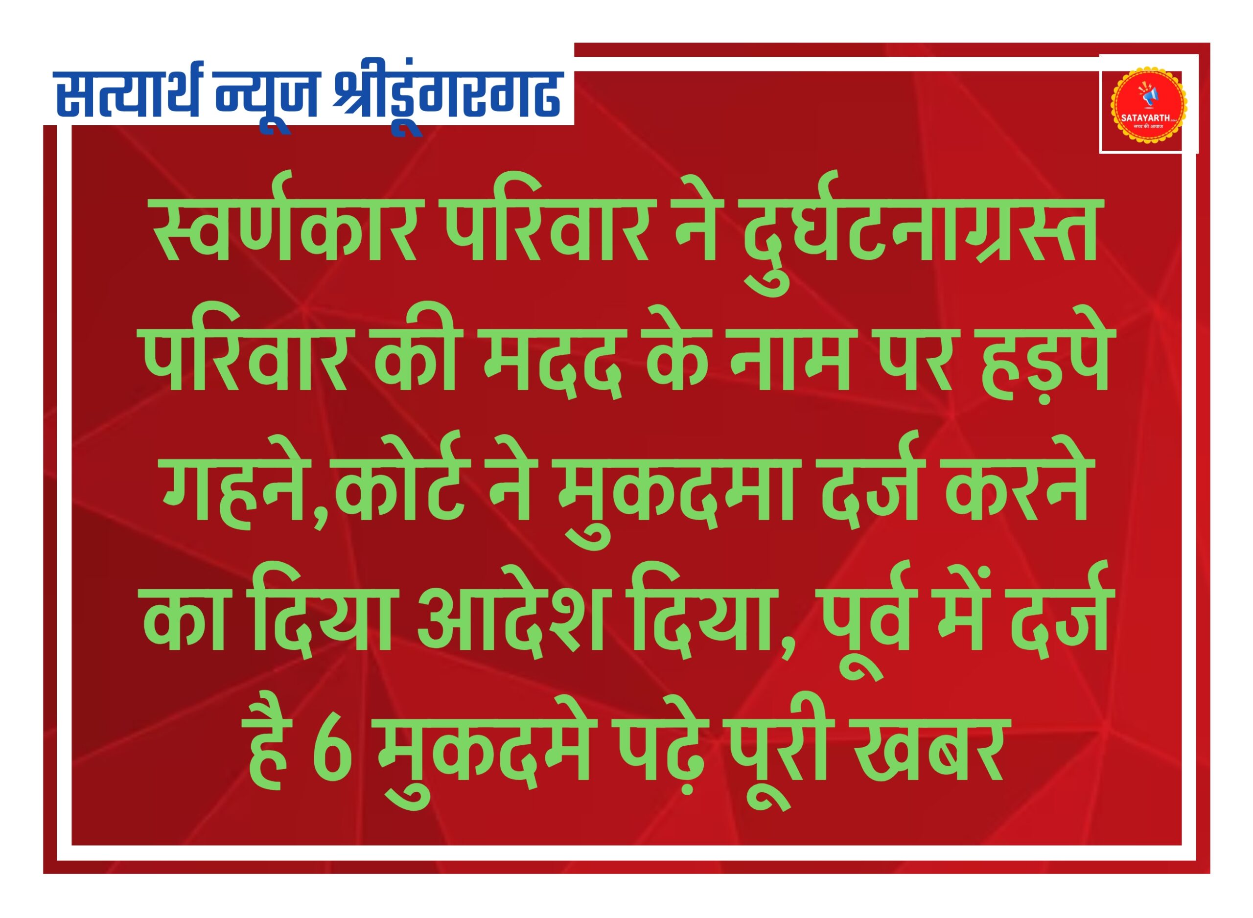 कस्बें के बिग्गा बास निवासी एक स्वर्णकार परिवार जिस पर पूर्व में छः मुकदमे दर्ज है। और अब एक बार फिर विवादों के दायरों में आ गया है। परिवार अब एक नई आपराधिक शिकायत के दायरे में आ गया है। न्यायालय ने पीड़िता के प्रार्थना पत्र पर संज्ञान लेते हुए श्रीडूंगरगढ़ थाने को भारतीय नागरिक सुरक्षा संहिता की धारा 175(3) के तहत मामला दर्ज करने के आदेश दिए हैं। मिली जानकारी के अनुसार आडसर बास निवासी कमलेश देवी पत्नी दिवंगत बुद्धप्रकाश सुनार के परिवार के साथ 13 सितंबर 2024 को एक गंभीर सड़क दुर्घटना घटित हुई थी। इस दुर्घटना में उनके दो पुत्र रमेश व गोपी,पुत्रवधु पूजा गंभीर रूप से घायल हो गए थे। जबकि पौत्र की मौके पर ही मृत्यु हो गई थी। घायलों को बीकानेर और फिर जयपुर रेफर किया गया। इस दौरान इलाज के लिए पैसों की सख्त आवश्यकता पड़ने पर कमलेश देवी के जानकार मदनलाल सुनार की पत्नी राधादेवी और पुत्र श्रवणकुमार उनके घर आए और मदद की पेशकश की। उन्होंने गहने देने के बदले बाजार से 10 लाख रुपये लाकर देने की बात कही। कमलेश देवी ने उमाशंकर पुत्र रुखमानंद सुनार की उपस्थिति में अपने सोने के गहने वजन करवाकर सौंप दिए। जब तीन दिन बीत गए और जब गहनों के बदले पैसे नहीं मिले तो उमाशंकर को तकादा करने भेजा गया,परंतु कोई संतोषजनक जबाब नहीं मिला। इस बीच परिवार की हालत और बिगड़ती गई,और 25 सितंबर को एक पुत्र की मृत्यु हो गई। सामाजिक रीति-रिवाजों के बाद जब कमलेश देवी ने पुनः अपने गहनों या पैसों की मांग की तो आरोपियों ने स्पष्ट मना कर दिया। आखिरकार, पीड़िता ने न्यायालय की शरण ली। न्यायालय ने मामले की गंभरीता को देखते हुए श्रीडूंगरगढ़ पुलिस थाने को मुकदमा दर्ज करने का आदेश दिया है।