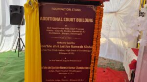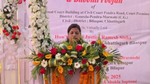 सूरज यादव, गौरेला पेंड्रा मरवाही। छत्तीसगढ़ उच्च न्यायालय के माननीय मुख्य न्यायाधीश श्री रमेश चंद्र सिन्हा ने सिविल कोर्ट पेंड्रारोड न्यायालय परिसर में बनने वाले अतिरिक्त न्यायालय भवन का वर्चुअल भूमि पूजन किया। यह नया सुसज्जित भवन लगभग 68 लाख रुपये की लागत से तैयार किया जाएगा, जिसमें न्यायिक कार्यों के लिए सभी आवश्यक आधुनिक सुविधाएं उपलब्ध रहेंगी। इस अवसर पर माननीय न्यायमूर्ति श्री नरेश कुमार चंद्रवंशी, न्यायाधीश उच्च न्यायालय छत्तीसगढ़ एवं पोर्टफोलियो न्यायाधीश, जिला बिलासपुर की भी गरिमामयी उपस्थिति रही। कार्यक्रम में गौरेला पेंड्रा मरवाही की जिला कलेक्टर श्रीमती लीना कमलेश मांडवी, पुलिस अधीक्षक एस.आर.भगत, जिले के अन्य प्रशासनिक अधिकारी, न्यायिक अधिकारी एवं बड़ी संख्या में अधिवक्तागण उपस्थित रहे।