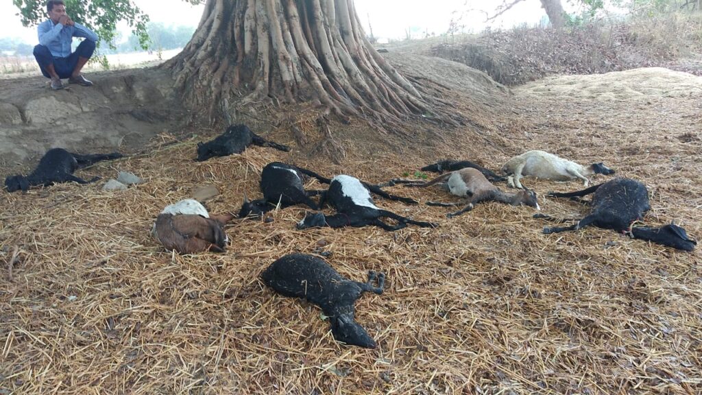 आकाशीय बिजली की चपेट में आने से नौ बकरियों सहित एक भेड़ की मौत