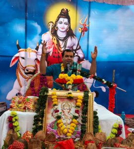 श्री रामायण प्रचार मंडल उधना सूरत द्वारा आशानगर उधना में आयोजित शिव महापुराण कथा के आयोजन में दूसरे दिन की कथा में सोमवार को दोपहर 3 बजे से शाम 6:30 बजे तक में पंडित संदीप महाराज ने बताया कि भगवान अपने शिव की मूर्ति एवं शिवलिंग के स्वरूप का परिचय दिया। पाठवाक्षर मंत्र अर्थात ॐ नमः शिवाय इस मंत्र की उत्पत्ति के विषय में बताया। अ उ और म् बनकर ॐ कहलाता है,जो प्रणवा मंत्र है। प्रणवा मंत्र से ही सारी सृष्टि का सर्जन होता है। शिव के पांच मुख से पांच अक्षर निकले,पहले मुख से न दूसरे मुख से म तीसरे से शि चौथे से वा पांचवे मुख से य अक्षर निकला,यह पंचाक्षर मंत्र कहलाते हैं। ॐ अर्थात प्रणवा मंत्र से ही गायत्री एवं वेद तथा सभी पुराणों की रचना मानी गई है। इसके उपरांत पार्थिव शिवलिंग के विषय में विस्तरित वर्णन किया। सतयुग में मणि का शिवलिंग का विशेष महत्व है, त्रेता युग में स्वर्ण का, द्वापर युग मे पारद (पारे) आदि से बने शिवलिंग का महत्व है और कलयुग में मिट्टी से बने शिवलिंग अर्थात पार्थिव शिवलिंग की पूजा का बड़ा महत्व है। त्रिपुण्ड धारण विधि का वर्णन किया कि त्रिपुण्ड में तीन रेखा है,पहली रेखा ब्रह्मा,दूसरी रेखा में विष्णु एवं तीसरी रेखा में स्वयं शिव विराजमान करते हैं। बिल्व पत्र का भी वर्णन किया कि जो व्यक्ति एक भी बिल्व पत्र शिवजी को चढ़ा दे तो उसे वाजपेय यज्ञ, सोम यज्ञ करने का फल प्राप्त होता है। कथा के दूसरे दिन भी बड़ी संख्या में श्रद्धालु शामिल हुए
