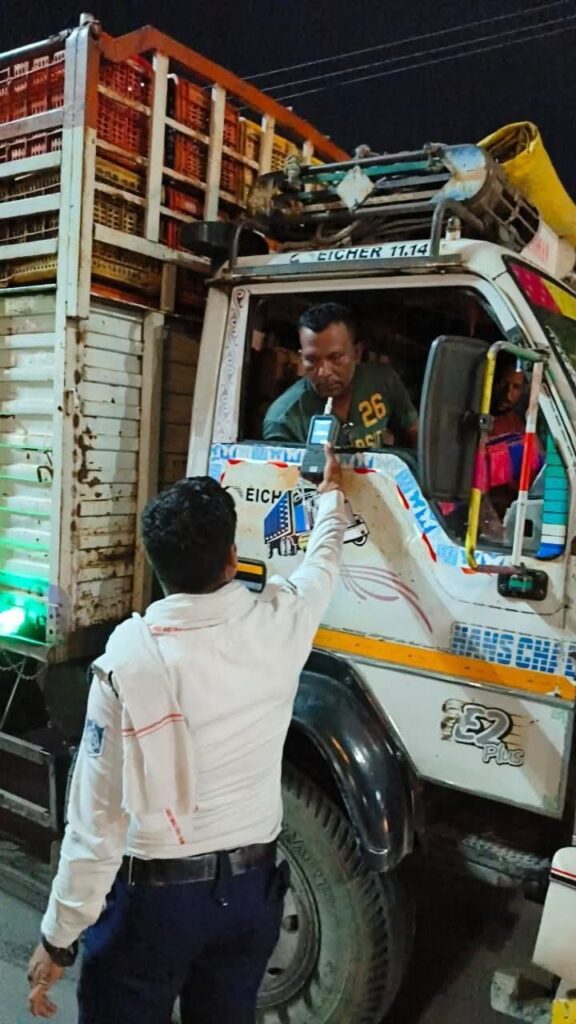 सड़क दुर्घटनाओं की रोकथाम एवं यातायात नियमों के प्रति आम जनता को जागरूक करने के उद्देश्य चलाए जा रहे अभियान के तहत दिनांक 10-11.05. 2025 को मध्य रात्रि में अलग-अलग टीम लगाया जाकर शहर के निगाही मोड, अमलोरी तिराहा,एवं पुराना ट्रैफिक तिराहा पर शराब पीकर वाहन चलाने वाले चालकों की चेकिंग की गई चेकिंग के दौरान लगभग 47 वाहनों को चेक किया गया एवं समझाइश दी गई थी शराब या अन्य कोई मादक पदार्थ का सेवन कर वाहन चलाने से मानसिक संतुलन बिगड़ जाता है एवं वाहन पर समुचित नियंत्रण नहीं हो पाता जिस कारण से दुर्घटनाएं घटित हो जाती है