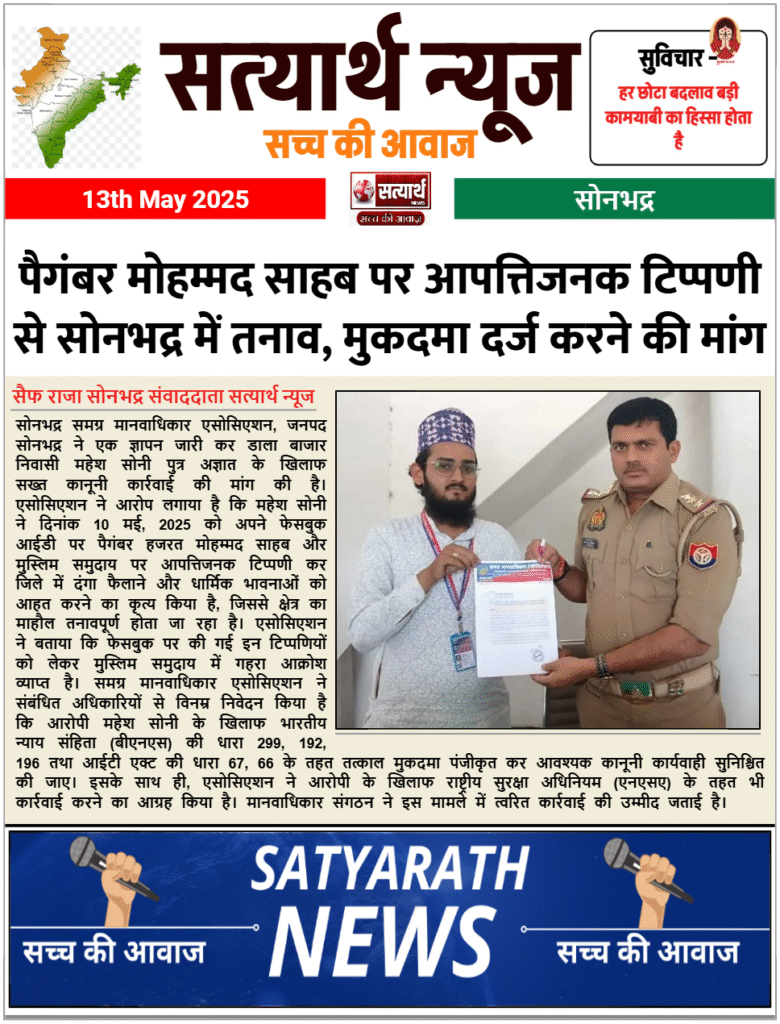 पैगंबर मोहम्मद साहब पर आपत्तिजनक टिप्पणी से सोनभद्र में तनाव, मुकदमा दर्ज करने की मांग