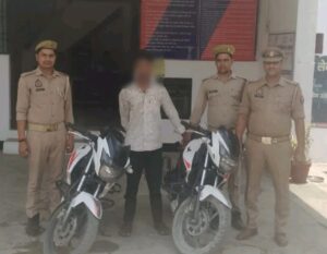 थाना चोपन पुलिस को मिली बड़ी सफलता मोटरसाइकिल चुराने वाले एक नफर अभियुक्त को गिरफ्तार कर कब्जे से 2 अदद मोटर साइकिल किया गया बरामद