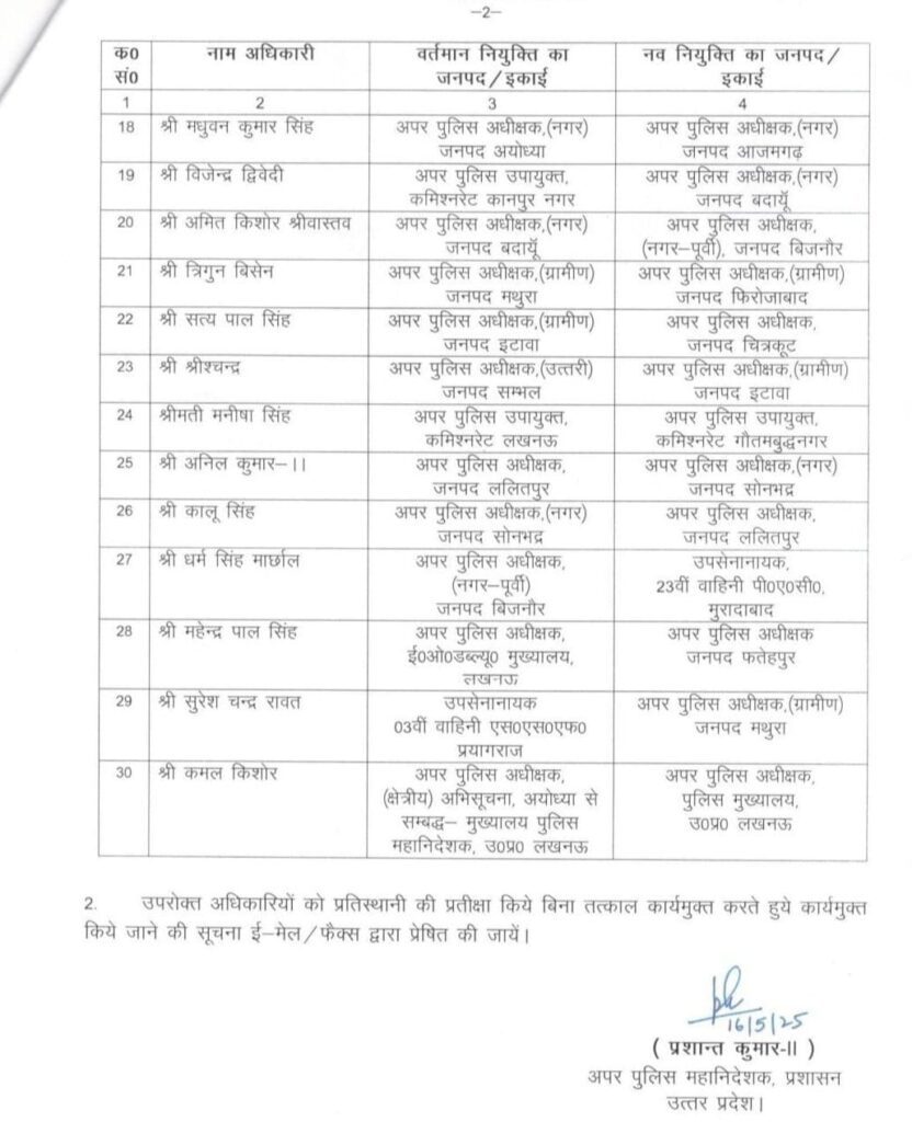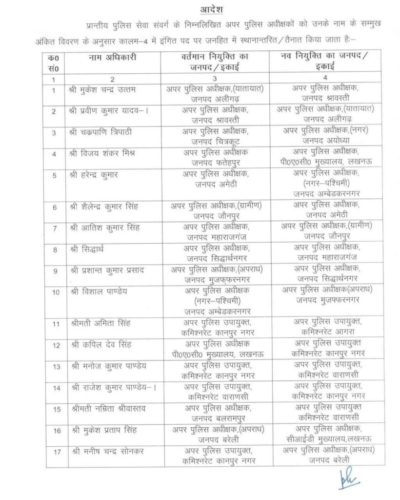 उत्तर प्रदेश में 30 अपर पुलिस अधीक्षकों का हुआ तबादला