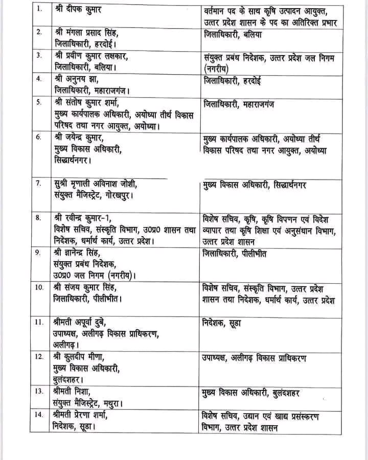 अनुनय झा बने हरदोई के जिलाधिकारी, संतोष कुमार शर्मा मुख्य कार्यपालक अधिकारी अयोध्या तीर्थ विकास परिषद नगर आयुक्त अयोध्या को बनाया गया महराजगंज का नया जिलाधिकारी