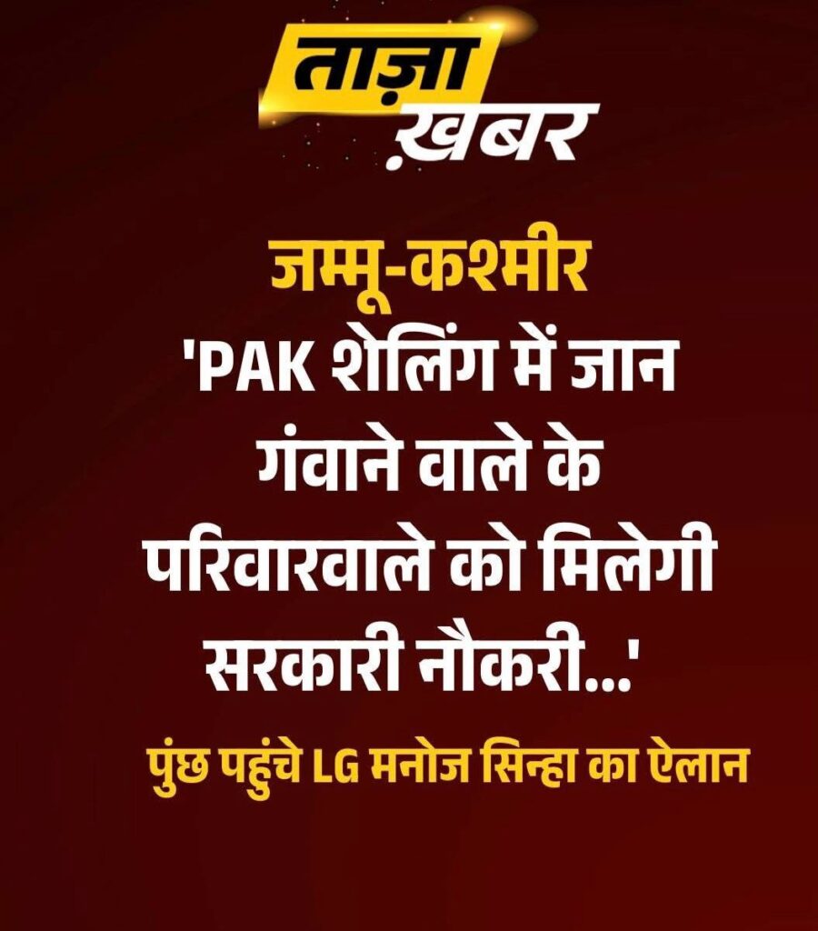 जम्मू-कश्मीर के उपराज्यपाल मनोज सिन्हा ने आज पूंछ का दौरा किया और पाकिस्तान द्वारा बिना वजह की गई गोलीबारी में अपने परिवार के सदस्यों को खोने वाले पीड़ित परिवारों से मुलाकात की. इस दौरान एलजी ने पीड़ित परिवारों के नजदीकी को सरकारी नौकरी देने का ऐलान किया. उन्होंने कहा कि केंद्र सरकार ने आपदा राहत राशि (एक्स-ग्रेच्युटी) और अन्य राहत प्रदान की है, और इसमें और मदद भी दी जाएगी.