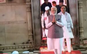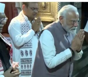 प्रधानमंत्री नरेंद्र मोदी बीकानेर दौरे के दौरान आज देशनोक स्थित करणी माता मंदिर पहुंचे, जहां उन्होंने पूजा-अर्चना कर देवी मां का आशीर्वाद लिया। उन्होंने देवी माँ के दर्शन किए और गर्भगृह में जाकर काबों के दर्शन कर पूजन किया। ततपश्चात माथा टेका इस दौरान उनके साथ राज्यपाल मुख्यमंत्री और केंद्रीय मंत्री भी मौजूद रहे। मंदिर परिसर में पहुंचने पर प्रधानमंत्री ने करणी माता के चरणों में चढ़ावा चढ़ाया और पूजा-अर्चना की। मंदिर ट्रस्ट की ओर से पीएम मोदी का विशेष सम्मान भी किया गया। पूजा के पश्चात प्रधानमंत्री कुछ समय के लिए मंदिर परिसर में रुके और वातावरण का अवलोकन किया। मंदिर से बाहर निकलते वक्त प्रधानमंत्री ने आमजन का अभिवादन किया और लोगों से मुलाकात भी की। इसके बाद वे देशनोक रेलवे स्टेशन के लिए रवाना हो गए। प्रधानमंत्री के इस दौरे को लेकर देशनोक में सुरक्षा के पुख्ता इंतजाम किए गए थे और स्थानीय लोगों में गजब का उत्साह और श्रद्धा देखने को मिली।