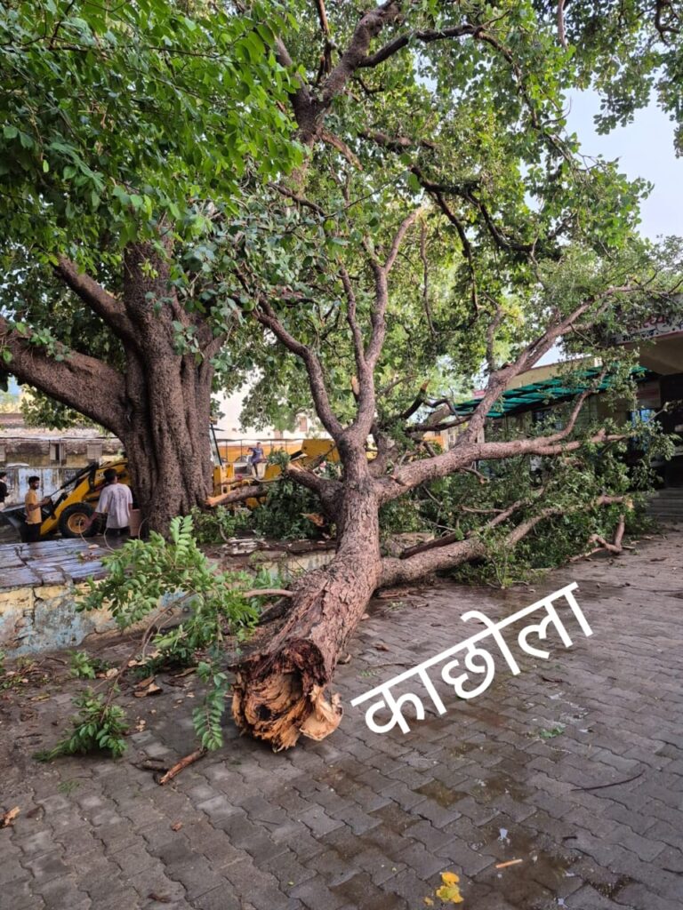 काछोला – सामुदायिक स्वास्थ्य केंद्र के अन्दर बड़ का बड़ा पेड़ टूटा, तेज आंधी तूफान बवंडर तेज हवा के दबाव से, एक बुजुर्ग की हुई मौत। बुजुर्ग मांगू पिता रूपा बेरवा निवासी हरपुरा आंधी आने से बुजुर्ग बैठा था पेड़ के नीचे ,भारी टहनी ऊपर गिरने से सीएचसी प्रभारी डॉक्टर राहुल यादव ने बताया कि टहनी गिरने के उपरांत बुजुर्ग को पीसीआर दिया गया