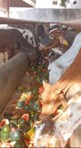 श्री गोपाल गौशाला दुलचासर में भामाशाह ने गौमाताओं को लगाया मीठे शीतल तरबजू का भोग कमेटी ने जताया आभार