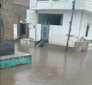 बिग्गा बास गणेश मंदिर के पास घर मे घुसा बरसाती पानी