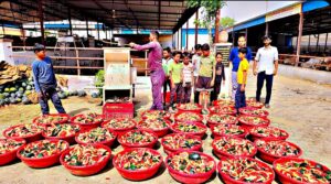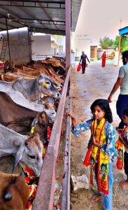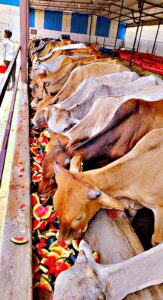 आज निर्जला एकादशी के पावन अवसर पर गांव कोटासर की करणी गौसेवा समिति गौशाला में आज दानदाताओं ने बढ़ चढ़कर की गौ सेवा। कोलकाता प्रवासी हरिकिशन सारस्वत खारड़ा हाल बीकानेर ने अपने स्वर्गीय पिता केवल चंद सारस्वत की पुण्य स्मृति में ₹11000 की राशि समर्पित कर 41 मण शीतल तरबूज भंडारा का भोग लगाकर की आत्मा शांति की कामना। वहीं बालोतरा प्रवासी रामेश्वर लाल भूतड़ा भाप निवासी 2100रू, मुंबई प्रवासी गणेशमल सुथार दुलचासर 1100रू, मुंबई प्रवासी राजेंद्र प्रसाद जोशी गंगा शहर 1100रू, जयपुर की विमला देवी सारस्वत ₹1100, कोलकाता प्रवासी गोवर्धन सिंह राजपुरोहित भोजास 3100रू, सुरेंद्र सिंह कोटासर ₹500, जुगल किशोर ओझा बीकानेर 751 रुपए,₹500 देवीलाल छरंग दुलचासर,500 बेंगलुरु से गुप्ता दान ,₹500 राजेंद्र प्रसाद सोनी पुणे,₹500 शिवानी भाटी रतनगढ़ ₹500 राम रतन बिश्नोई सांवतसर के द्वारा सामूहिक विशाल तरबूज भंडारा गो वंश को समर्पित किया गया। गौशाला के भामाशाहों के द्वारा बच्चियों के लिए आज विशेष शरबत का प्रसाद वितरित किया गया। गौशाला कमेटी ने सभी भामाशाहों का जताया आभार गौशाला कमेटी के सभी सदस्यों के द्वारा एवं गांव के युवा गो भक्तों के द्वारा तरबूज भंडारा वितरण में सहयोग प्रदान किया गया।