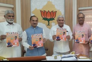 प्रगतिशील राजस्थान की दिशा में सतत कार्य कर रही भाजपा सरकार के एक वर्ष के जनहितार्थ कार्यों को समाहित करने वाली पुस्तिका का विमोचन भाजपा प्रदेश कार्यालय, जयपुर में किया गया। इस अवसर पर भाजपा प्रदेश अध्यक्ष श्री मदनलाल राठौड़ ने पुस्तिका का लोकार्पण अपने कर कमलों से किया। विधायक ताराचंद सारस्वत ने कहा कि “प्रदेश की भाजपा सरकार ने श्रीडूंगरगढ़ क्षेत्र में करोड़ों रुपयों के विकास कार्य करवाए हैं।” उन्होंने कहा कि यह सरकार जनभावनाओं के अनुरूप निर्णय लेकर धरातल पर कार्य कर रही है। प्रदेश अध्यक्ष मदनलाल राठौड़ ने कहा कि “भाजपा सरकार में विकास कार्यों में कभी भी कोई कमी नहीं आने दी जाएगी। हम सभी वर्गों के सर्वांगीण विकास के लिए प्रतिबद्ध हैं।”इस मौके पर अनेक जनप्रतिनिधि,पदाधिकारी एवं कार्यकर्ता उपस्थित रहे। पुस्तिका में पिछले एक वर्ष में सरकार द्वारा श्रीडूंगरगढ़ क्षेत्र में विकास कार्यों के लिए किए गए महत्वपूर्ण निर्णयों, योजनाओं के क्रियान्वयन और जनकल्याणकारी प्रयासों का विस्तृत विवरण प्रस्तुत किया गया है।