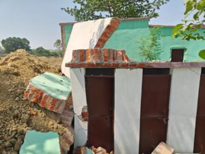 *जेसीबी के धक्के से पंचायत भवन की दिवाल सहित शौचालय हुआ धराशाई*