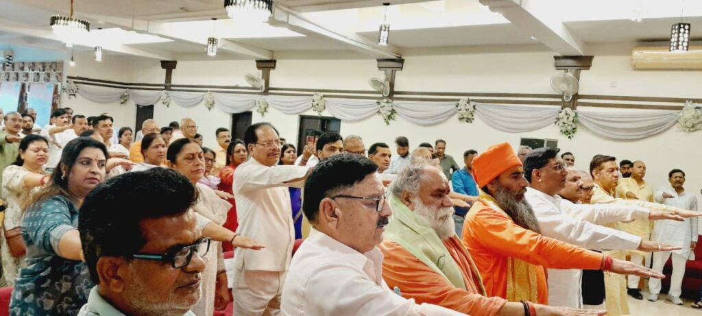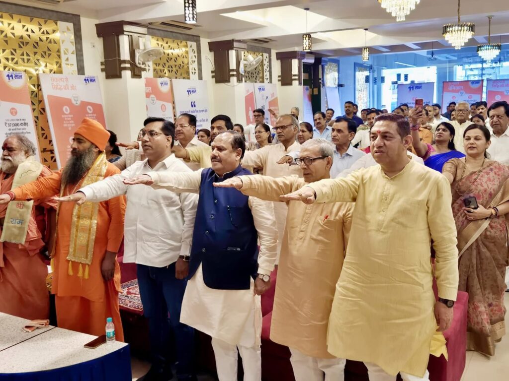 कार्यक्रम की अध्यक्षता कर रहे महामंडलेश्वर स्वामी रूपेंद्र प्रकाश जी महाराज ने सभी आए हुए अतिथियों को विकसित भारत 2047 के संकल्प को पूर्ण करने की शपथ दिलाई और कहा कि हम सब का गौरव है कि आज जिस प्रकार से आज देश के यशस्वी प्रधानमंत्री नरेंद्र मोदी ने भारतीयों का मान बढ़ाया है हर भारतीय आज अपने आप को गौरवान्वित महसूस कर रहा है।