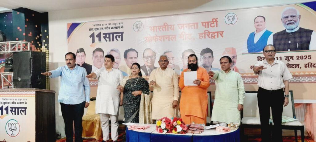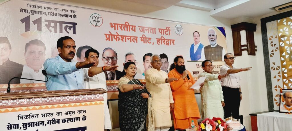 भारतीय जनता पार्टी जिला हरिद्वार द्वारा आज केंद्र सरकार के सफलतम 11 वर्ष पूर्ण होने पर होटल मधुबन में विभिन्न कार्यक्रमों का आयोजन किया गया।