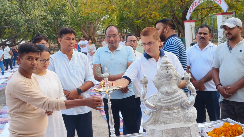 जिलाधिकारी श्री बी0 एन0 सिंह ने कलेक्ट्रेट परिसर में आज ग्यारहवें अंतरराष्ट्रीय योग दिवस का दीप प्रज्जवलित कर शुभारम्भ किये। ग्यारहवें अंतरराष्ट्रीय योग दिवस की