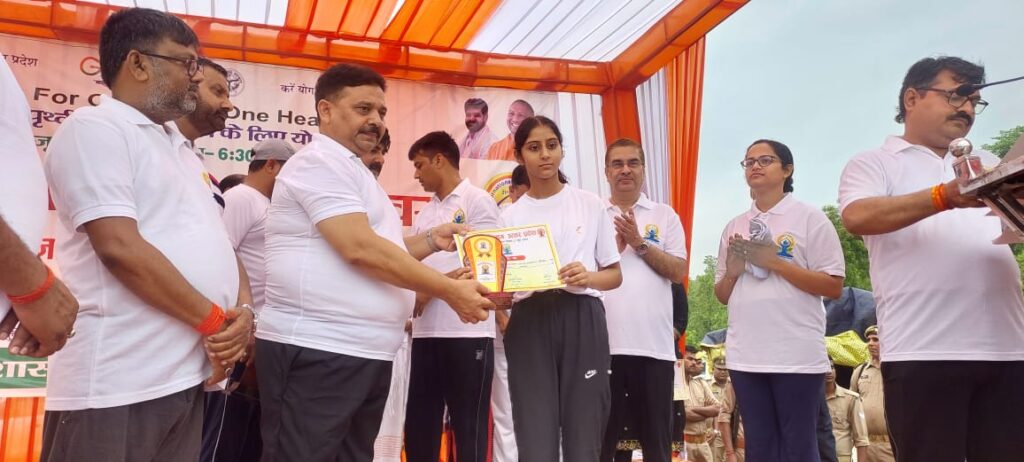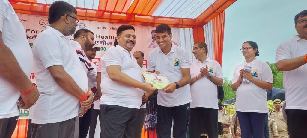 साथ ही आयुष विभाग के द्वारा विशिष्ट स्पोर्ट्स स्टेडियम तियरा राबर्ट्सगंज में भी वृहद योगाभ्यास आयोजित किया गया जिसमें मुख्य अतिथि ओम प्रकाश त्रिपाठी जी विशिष्ठ अतिथि माननीय पूर्व सांसद राम सकल जी ,कमिश्नर श्री बाल कृष्ण त्रिपाठी जी रहे एवं अपर जिलाधिकारी श्री सहदेव मिश्रा जी भी उपस्थित रहे। कार्यक्रम के नोडल डा ज्योतिर्जय ने भी कार्यक्रम को सफल बनाने में सहयोग प्रदान किया।
