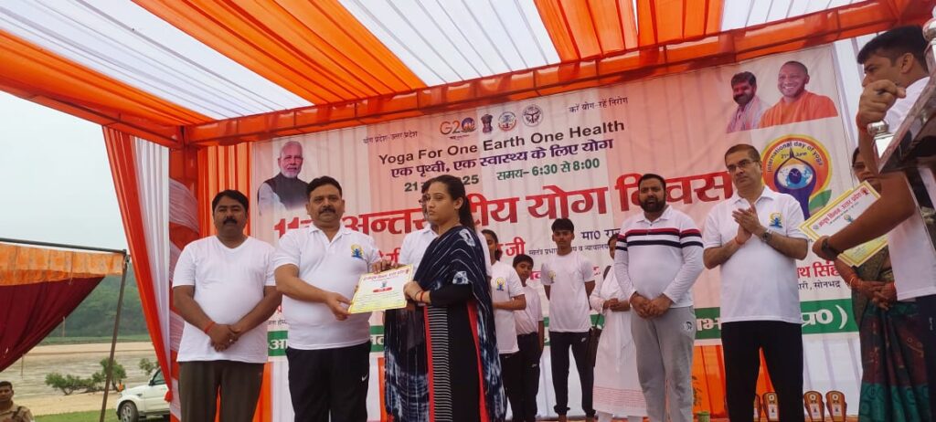 प्रत्येक वर्ष की भांति उत्साह एवं ऊर्जा के साथ जनपद के अधिकारियों कर्मचारियों एवं जनपद की जनता ने बढ़-चढ़कर पूर्ण मनोयोग से पर्यटन स्थल अबाड़ी पिकनिक स्पॉट कनहर नदी के तट पर कल कल ध्वनि के बीच योगाभ्यास किया ।कार्यक्रम के मुख्य अतिथि माननीय प्रभारी मंत्री रविंद्र जायसवाल जी एवं विशिष्ट अतिथि भाजपा जिला अध्यक्ष नंदलाल गुप्ता जी दोनों ने अपने अनुभव एवं उद्बोधन से लोगों को ऊर्जान्वित किया ।