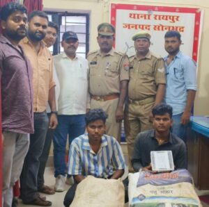 पुलिस अधीक्षक सोनभद्र अशोक कुमार मीणा द्वारा नशे के विरुद्ध चलाये जा रहे अभियान के अन्तर्गत एवं अपर पुलिस अधीक्षक ऑपरेशन के निर्देशन में व क्षेत्राधिकारी सदर सोनभद्र के निकट पर्यवेक्षण में दिनांक 27.06.2025 को थाना रायपुर पुलिस द्वारा 02 नफर अभियुक्त 01. शुकुल राम पुत्र राजकुमार राम, 02. विवेकानन्द पुत्र शिवकुमार राम निवासीगण डूमरकोन पोस्ट कोल्हुआ थाना अधौरा जनपद भभुआ (बिहार) के कब्जे से 42 किलो 989 ग्राम अवैध मादक पदार्थ गांजा बरामद- कर गिरफ्तार किया गया । उक्त बरामदगी व गिरफ्तारी के आधार पर थाना रायपुर पर मु0अ0सं0 97/2025 धारा 8/20/29/60 एनडीपीएस एक्ट का अभियोग पंजीकृत कर अभियुक्त उपरोक्त को माननीय न्यायालय भेजा गया ।