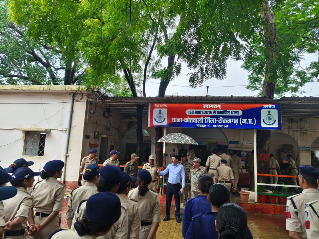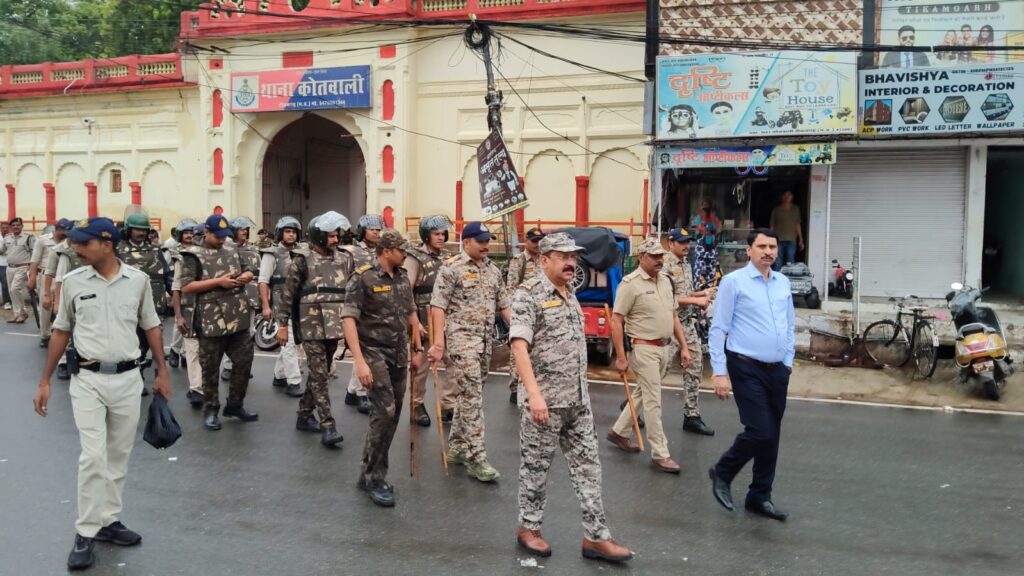 आगामी त्योहारों को दृष्टिगत रखते हुए आज दिनांक 04/07/2025 को पुलिस अधीक्षक टीकमगढ़ श्री मनोहर सिंह मंडलोई के द्वारा आगामी त्योहारों को दृष्टिगत रखते हुए टीकमगढ़ जिले में शांति एवं कानून व्यवस्था बनाए रखने हेतु पुलिस अधिकारियों के साथ फ्लैग मार्च निकाला जो थाना कोतवाली से प्रारंभ होकर शहर के मुख्य चौराहों ,बाजारों ,मस्जिदों से होता हुआ कोतवाली में समाप्त हुआ ।