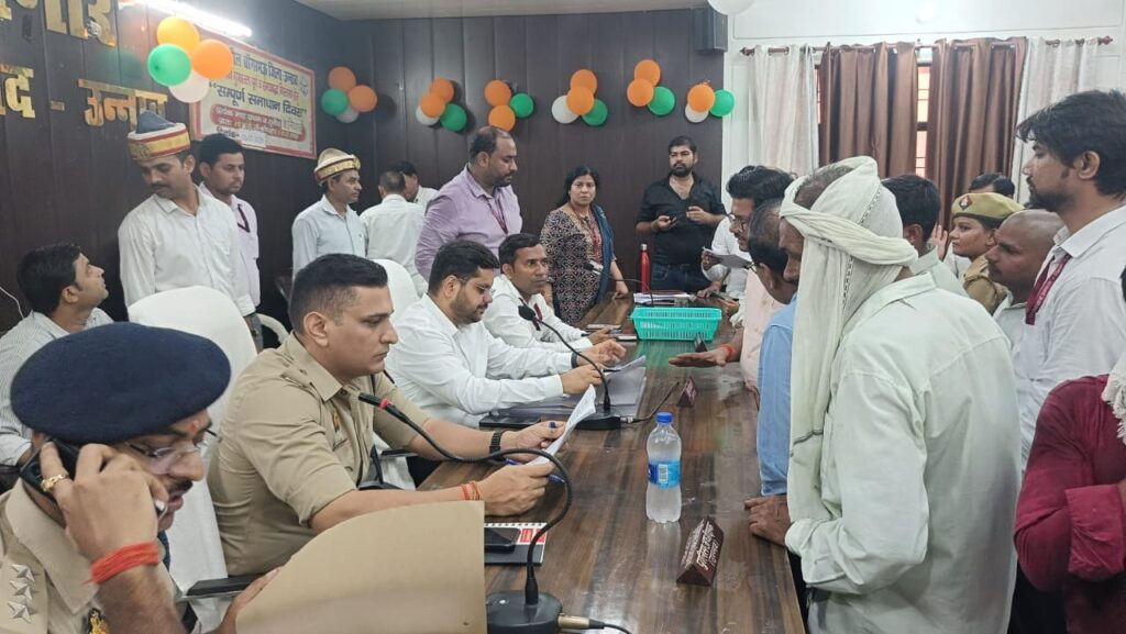 उन्नाव:-उन्नाव के जिलाधिकारी गौरांग राठी और पुलिस अधीक्षक दीपक भूकर ने 5 जुलाई 2025 को बांगरमऊ तहसील में संपूर्ण समाधान दिवस पर जनसुनवाई की। इस दौरान अपर जिलाधिकारी सुशील कुमार और क्षेत्राधिकारी अरविंद कुमार चौरसिया भी मौजूद रहे।