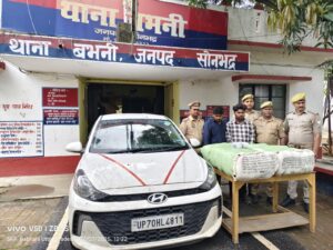 पुलिस अधीक्षक सोनभद्र, श्री अशोक कुमार मीणा के निर्देशन में अवैध मादक पदार्थों की तस्करी करने वाले तस्करों के विरुद्ध सोनभद्र पुलिस के निरन्तर प्रहार की कड़ी में अपर पुलिस अधीक्षक (ऑपरेशन) श्री त्रिभुवन नाथ त्रिपाठी व क्षेत्राधिकारी दुद्धी श्री राजेश कुमार राय के पर्यवेक्षण में थाना बभनी पुलिस द्वारा मुखबिर की सूचना पर दिनांक 06.07.2025 को समय 21.50 बजे नधिरा तिराहे के पास से एक औरा कार संख्या UP70HL4811 से उड़ीसा प्रान्त से गांजा लोड़ करके प्रयागराज ले जा रहे दो बोरियों में कुल 63 किलो 600 ग्राम अवैध मादक पदार्थ गांजा (अनुमानित कीमत 12 लाख 72 हजार रुपये) के साथ 02 नफर अन्तर्रजनपदीय गांजा तस्करों को गिरफ्तार किया गया । इस बरामदगी व गिरफ्तारी के सम्बन्ध में थाना बभनी पर मु0अ0सं0-105/2025 धारा 8/20/27ए/29/60 NDPS Act का अभियोग पंजीकृत कर अग्रेतर विधिक कार्यवाही की जा रही है ।