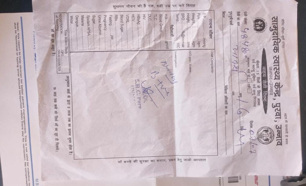 सी एच सी पुरवा में ब्लड जांच किट खत्म, इंटर कॉलेज के छात्र बैरंग लौटे