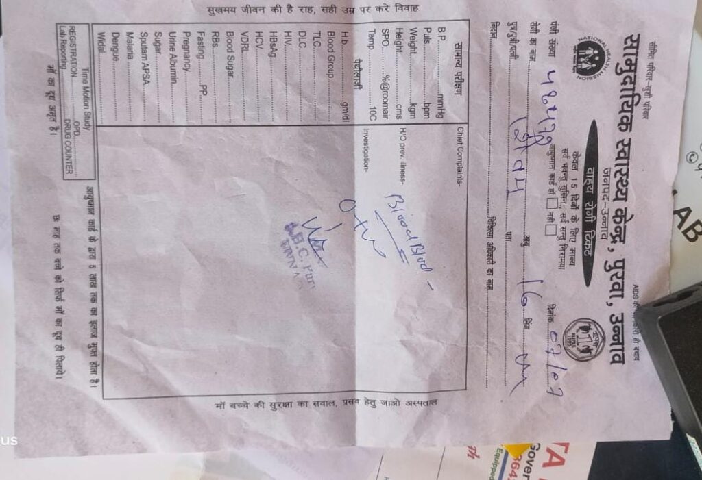 पुरवा उन्नाव:- प्रदेश सरकार स्वास्थ्य विभाग को लेकर लाख दावे कर ले, परंतु व्यवस्थाएं आज भी ज्यों की त्यों बनी हुई है, स्वास्थ्य मंत्री के लाख प्रयासों के बाद भी, सरकारी अस्पतालों से लोगों का मोह भंग होता जा रहा है, सरकारी अस्पतालों की बदहाल व्यवस्था एक बार फिर उजागर हुई है, सामुदायिक स्वास्थ्य केंद्र पुरवा में एम.आर.आर.एस. इंटर कॉलेज के छात्र ब्लड ग्रुप की जांच कराने पहुंचे थे, लेकिन जांच न हो सकी, क्यों की डॉक्टरों ने पर्चा बनने के बावजूद छात्रों को यह कहकर लौटा दिया, कि ब्लड जांच की किट खत्म हो गई है,