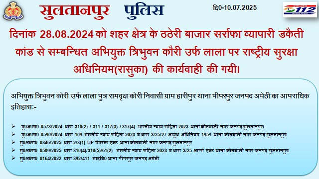 बहुचर्चित ठठेरी बाजार डकैती कांड के आरोपियों पर एसपी सुल्तानपुर कुँवर अनुपम सिंह ने कसा शिकंजा!