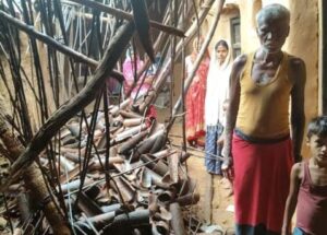 कोन / सोनभद्र – विकास खण्ड कोन के ग्राम पंचायत चांची कला के नरहटी गांव में रात को हुई भारी बारिश में आनंद कुमार का कच्चा मकान बारिश से धाराशायी हो गया। जहाँ मकान में मकान सो रहे माया देवी, देवांश कुमार ,ज्योति कुमारी बाल-बाल बच गए। जिसके क्रम में माया देवी ने बताया कि वे तीनों एक साथ सो रहे थे कि अचानक रात में भारी बारिश के दौरान अचानक दीवार गिरने की आवाज आई जहाँ चारपाई से उठकर भागने में सफल रहे और वहीं देखते ही देखते दीवार धराशायी हो गया। वहीं मकान स्वामी आनंद कुमार ने कहा कि वे गरीबी के कारण कच्चे मकान में रहते अब वे बेघर हो गए हैं। उन्होंने जिला अधिकारी समेत संबंधित अधिकारियों से मदद की गुहार लगाई है।