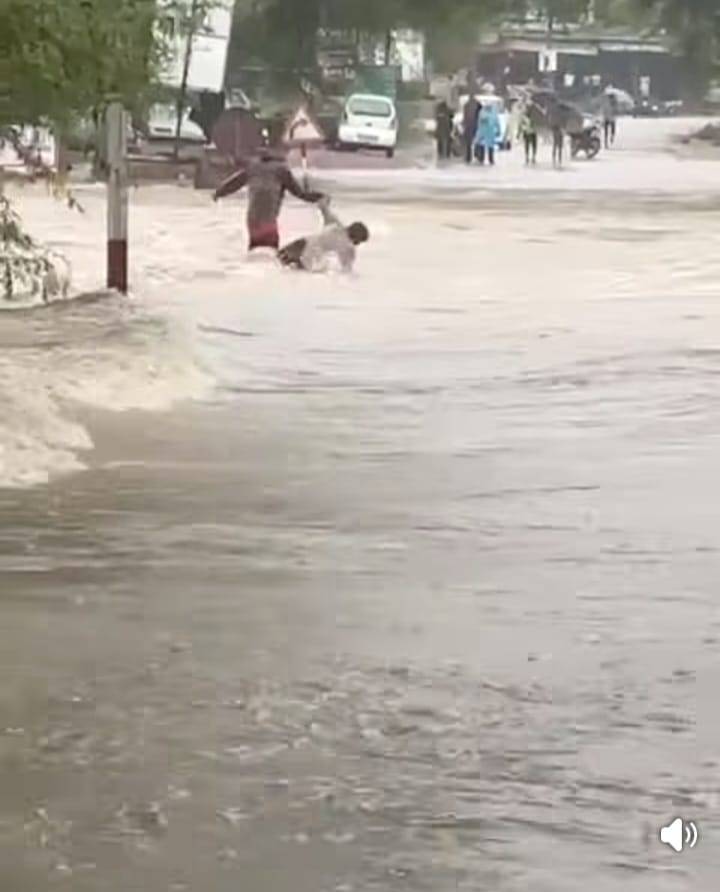 मानसून की बारिश के बीच सोमवार दोपहर को पुलिया पर पानी का तेज बहाव था। इसी दौरान बिजौलिया के नीरज रावणा राजपूत और खेराडिया , कैलाश राजपूत लापरवाही से पुलिया पार करते हुए बह गए। सूचना मिलने पर पुलिस मौके पर पहुंची और सिविल डिफेंस टीम ने एक घंटे की मशक्कत के बाद दोनों को सुरक्षित बाहर निकाला। कैलाश पास के एक पेड़ में फंसा मिला, जिसे बचाव दल ने सावधानी से बाहर निकाला।