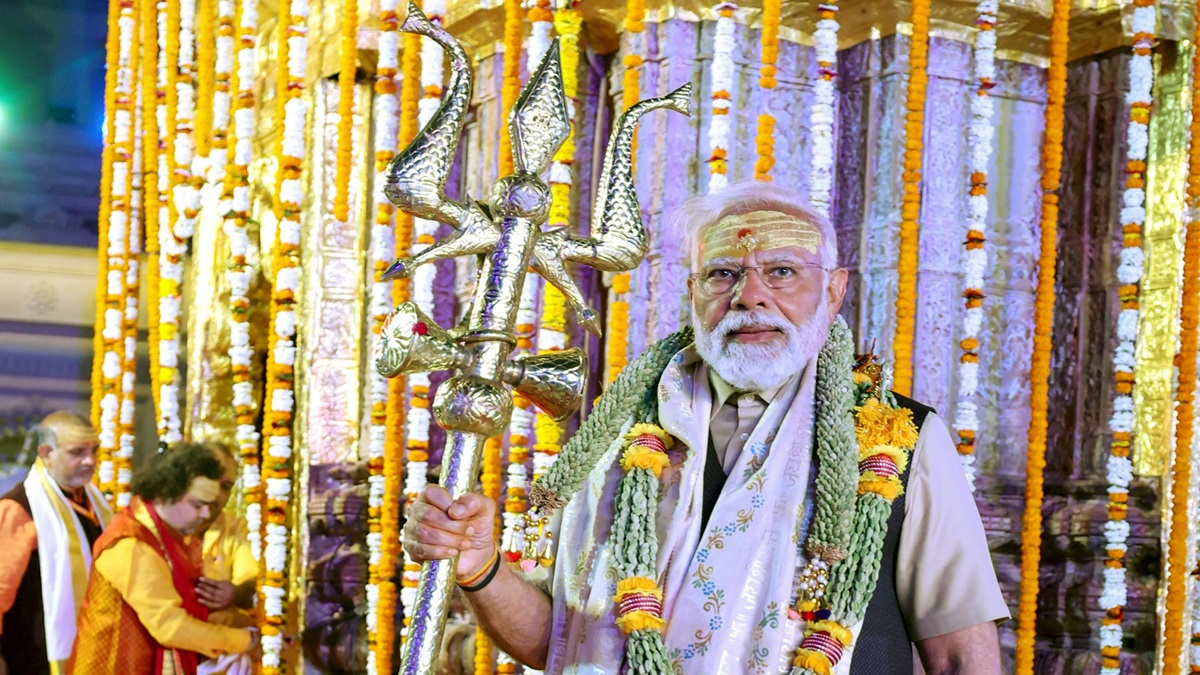 **EDS: IMAGE VIA PMO** Varanasi: Prime Minister Narendra Modi visits the Kashi Vishwanath temple, in Varanasi, Saturday, March 9, 2024. (PTI Photo) (PTI03_09_2024_000506B)