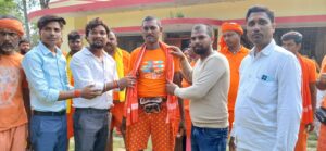 विंढमगंज/सोनभद्र। स्थानीय थाना क्षेत्र अंतर्गत ग्राम पंचायत महुली के शिव मंदिर शनिचर बाजार से दर्जनों कि संख्या में कांवरियों का जत्था रवाना हुआ। बताते चलें कि कांवरियों का हुजूम सबसे पहले रेलवे स्टेशन चौराहा पर एकत्रित हुआ वहां से डीजे के साथ बोल बम,बोल बम जयकारे के साथ भक्ति गितो पर नाचते गाते जुलूस निकाला गया तथा मेन रोड महुली होते हुए शिव मंदिर शनिचर बाजार पहुंचा। वहां पर सभी कांवरियों ने भोलेनाथ नाथ का आशीर्वाद प्राप्त किए तत्पश्चात अपने निजी वाहन से रवाना हो गए। शिव मंदिर शनिचर बाजार के प्रांगण में भारतीय युवा शक्ति संगठन के पदाधिकारी गण जैसे विकास कनौजिया, शक्ति कनौजिया, अभिषेक कनौजिया तथा वरिष्ठ समाज सेवी उदय कुमार शर्मा के द्वारा कांवरियों के प्रतिनिधि मंडल को अंग वस्त्र से सम्मानित किया गया। मुख्य रूप से देवेन्द्र यादव, मिथिलेश कुमार शर्मा, राजकुमार शर्मा, दिलीप जायसवाल, राजेश कनौजिया, कमलेश प्रजापति, विंध्याचल,बिरू, प्रतिमा देवी, पुजा देवी, रीता देवी रवाना हुए।