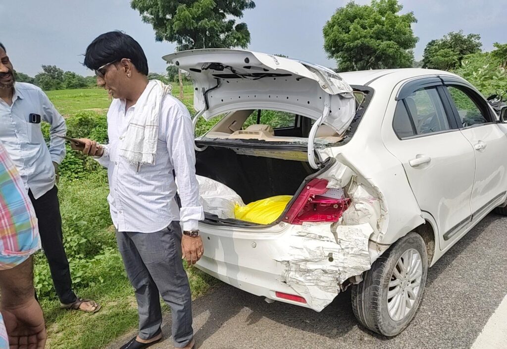 तेज रफ़्तार ओटो से कार कि हुई टक्कर जिस में कार पिछे से हुई क्षतिग्रस्त