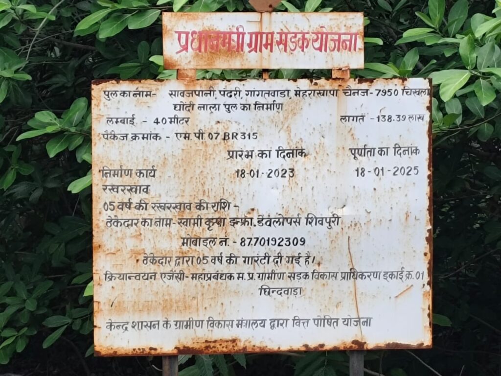 प्रधानमंत्री ग्राम सड़क योजना की अनदेखी: 6 माह पहले खत्म हो चुकी है समय-सीमा, फिर भी अधूरी पड़ी पुलिया