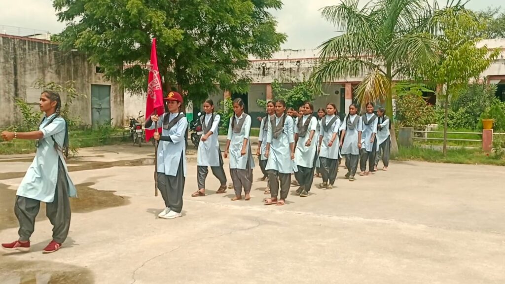महुआ विद्यालय में विद्यार्थी पीटी परेड की तैयारी करते हुए