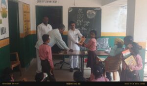 प्राथमिक विद्यालय बलियरी में ग्राम प्रधान व उनके सहयोगी द्वारा बच्चों को प्रोत्साहित किया