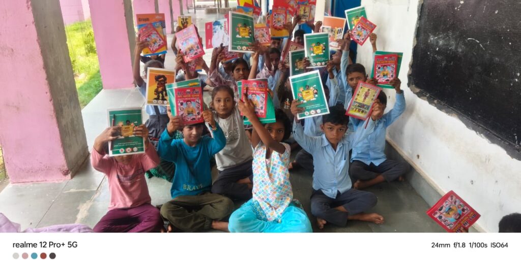 कक्षा 6 से 8 तक के बच्चों को कॉपी, पेन, ग्राफ कॉपी और पट्टी पहाड़ा पुस्तिका प्रदान की गई।