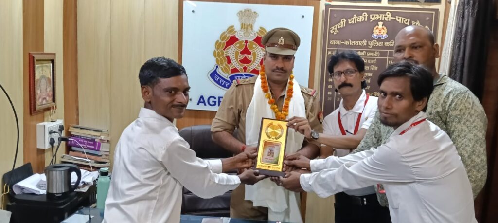आगरा आज पाय चौकी प्रभारी श्री सोनू जी को थाना न्यू आगरा की डिवीजन चौकी प्रभारी बनाए जाने पर उन्हें भव्य स्वागत सम्मान के साथ उनके उज्जवल भविष्य की कामना के साथ विदाई समारोह का आयोजन किया गया।