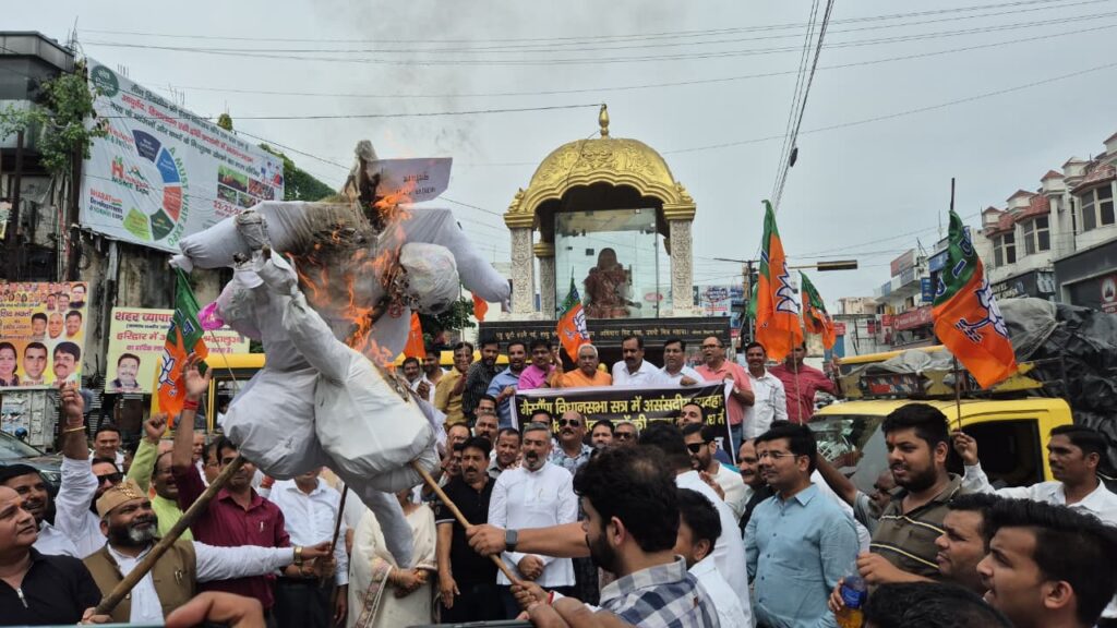 आज भारतीय जनता पार्टी जिला हरिद्वार ने कांग्रेस पार्टी के विधायकों द्वारा मानसून सत्र गैरसैंण में संपन्न विधानसभा सत्र के दौरान अमर्यादित व्यवहार किए जाने एवं लोकतांत्रिक मूल्यों की हत्या किए जाने के विरुद्ध कांग्रेस पार्टी के खिलाफ कड़ा विरोध प्रदर्शन कर पुतला दहन किया।